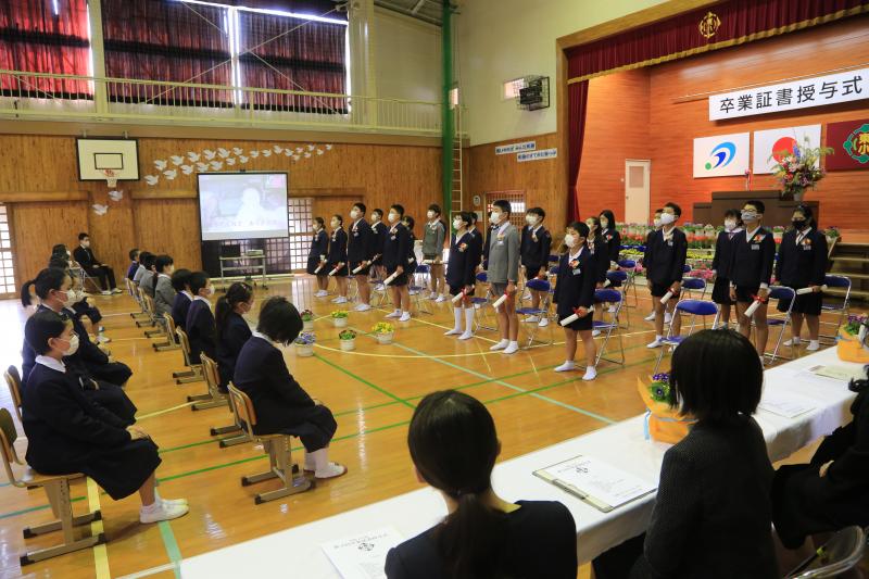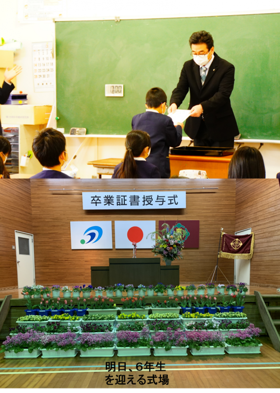 今日は修了式を行いました。一年間を締めくくる一日となりました。修了式は感染症対策のため放送で行いましたが、修了証は学級で代表児童に手渡しました。124人全員が着座し、引き締まった表情で参加していました。いろんなことがあった令和2年度でしたが、大きく成長できた東っ子であったと感じた一日でした。明日は卒業式です。