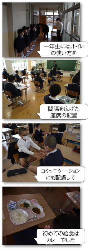 学校生活が始まりました。天気は快晴とはいかないものの、雨降りもなく、昼休みは運動場に元気な子供たちの声が響いています。教室では、新しい学年での生活が始まりました。充実した1日になることを願います。