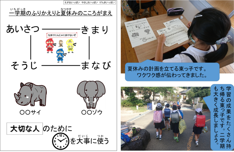 本日、一学期の終業式を行いました。放送による実施となり、校長からの長い話になってしまいましたが、最後までしっかり聴くことができていました。予想外のことがたくさん起こった一学期でした。その中にあっても、よく我慢し、力を合わせて学校生活を送ることができた東っ子でした。私たちの誇りです。