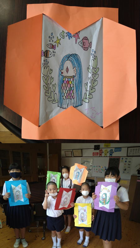 今朝、校長室に子どもたちがやってきました。「アマビエさまを描きました。」と色とりどりのアマビエさま図画をもってきてくれました。それも、すべて厚紙の額付きです。描いた子どもたち一人一人の目に、新型コロナウイルス感染症の終息を願う心を感じ取ることができました。