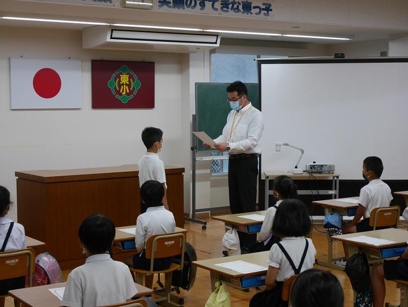6月1日(月)の業間タイムに、「子ども民生委員」委嘱状授与式を行いました。3年生から「子ども民生委員」に委嘱され、民生活動を行っています。委嘱状を手にした東っ子の顔が頼もしく感じました。これまで以上に地域の方々との交流を深めてほしいと思います。
