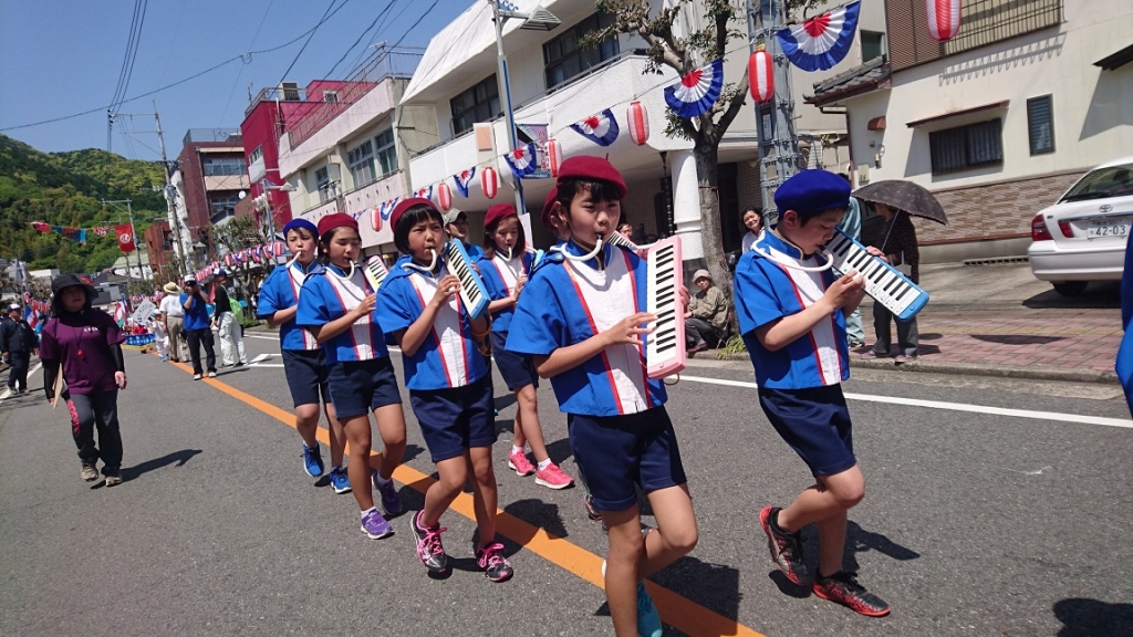 毎年行われる牛深ハイヤ祭りのパレードに、本校5・6年生が参加しました。