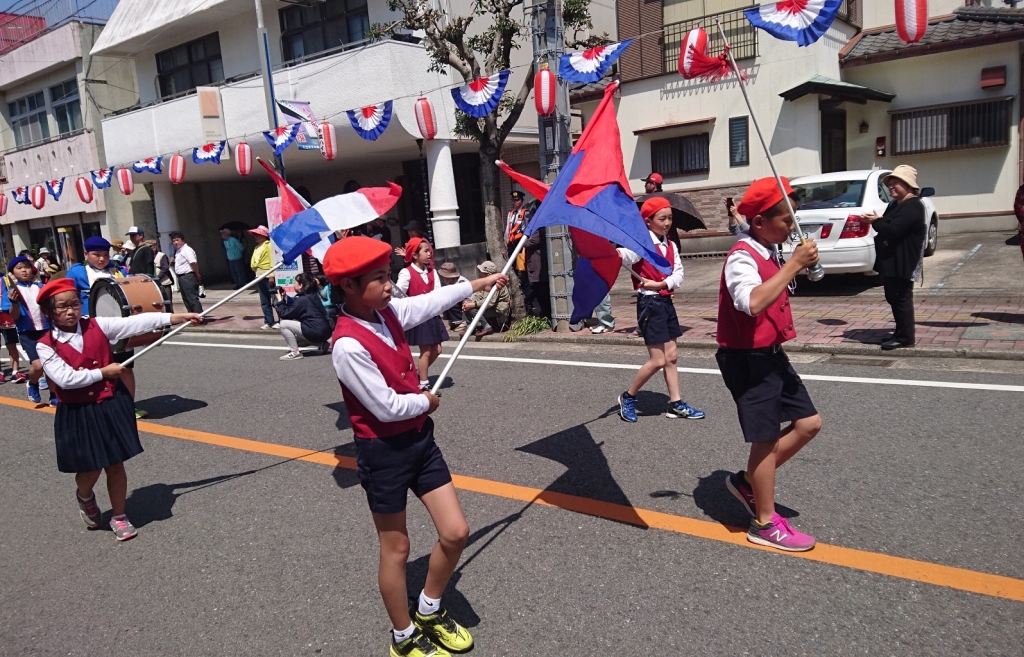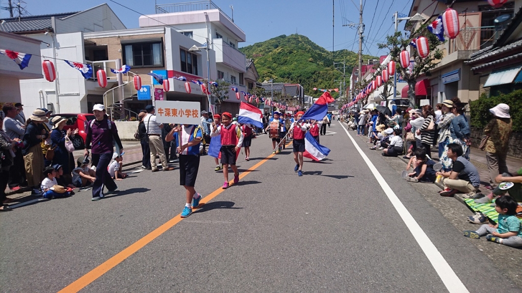 毎年行われる牛深ハイヤ祭りのパレードに、本校5・6年生が参加しました。