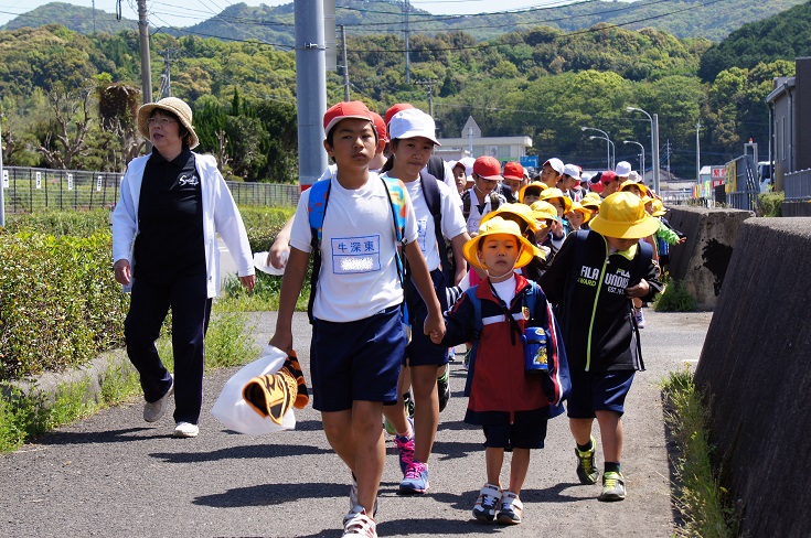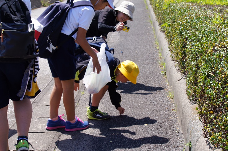 片道4kmという長い距離でしたが、6年生に手を引かれて、
