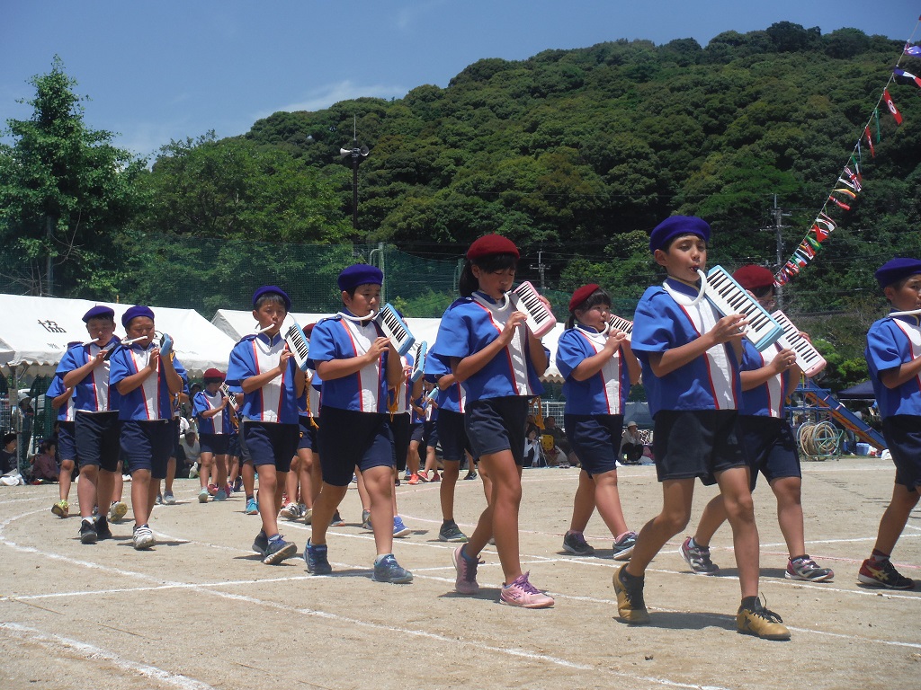↑鼓笛パレード 演奏に合わせて 下級生も大合唱でした