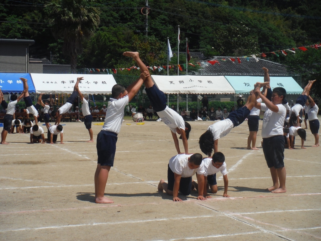 ↑5・6年組体操 みんなの気持ちと動きがピッタリでした