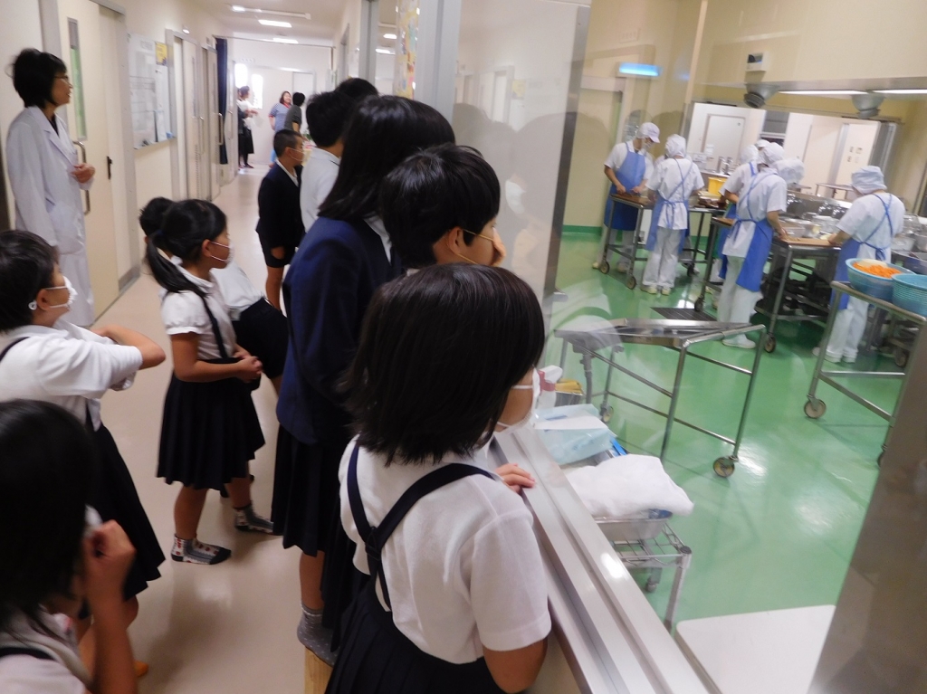 2年生が牛深給食センターに行ってきました。給食センター到着後、お仕事の様子を見学しました。普段見ることのない給食の準備に、子どもたちも釘付けになっていました。教えていただいた栄養教諭の鬼塚先生にも質問攻めで、たくさん勉強をさせてもらいました。見学後は会食をし、参加された保護者の方との食事を楽しみました。給食の大切さを知り、好き嫌いなく食べることを目標にして、モリモリ食べてほしいです。