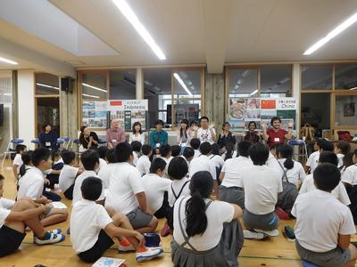 中国、スリランカ、インドネシア、トルコ、ミャンマーなど、様々な国の説明を聞いて文化や生活のことを知ることができました。留学生の人たちが、スライドや英語でわかりやすく教えようとする姿や、それを一生懸命聞いて国のことを知ろうとする子どもたちの姿が素敵でした。