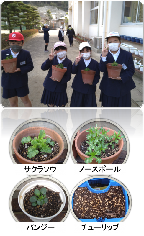 今日は、業間に花いっぱい活動を行いました。東っ子全員が一鉢ずつ、大切に育てます。1,2年生は「チューリップ」。3、4年生は「ノースポール」。5年生は「パンジー」。6年生は「サクラソウ」です。愛情を込めて言葉をかけながら、大切に育ててくれることでしょう。大輪を咲かせ、学校を華やかにしてくれることを願っています。