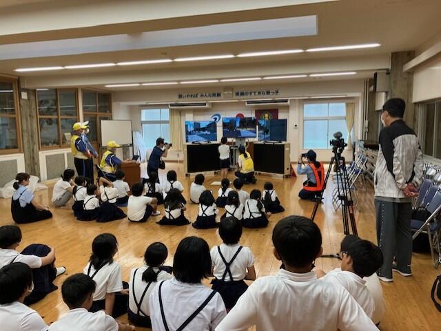 今日は低学年の児童は交通安全を学ぶため警察署のシュミレーション体験を行いました。