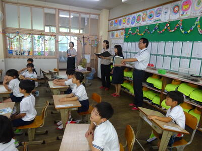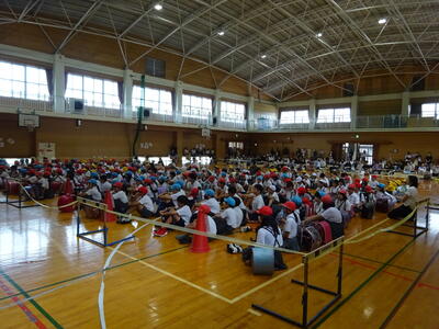 穏やかな天候の中、1・2年生が体育のペースランニングをしていました。今まではスタート直後からトップを競い、全力で走ることが多かったのですが、担任が、「気持ちよく走り続けられるために、自分のペースを見つける『ペースランニング』の指導するようになってからは、子どもたちはしっかりそのめあてを頭に入れて、自分のペースで気持ちよく走ることができています。