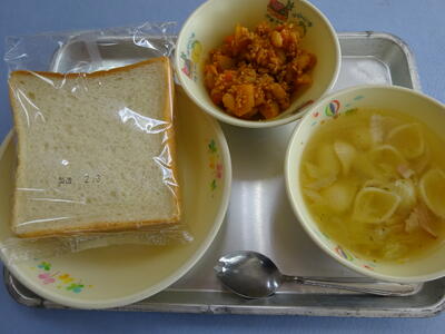 食パン、チリコンカン、マカロニスープ、牛乳(514kcal)