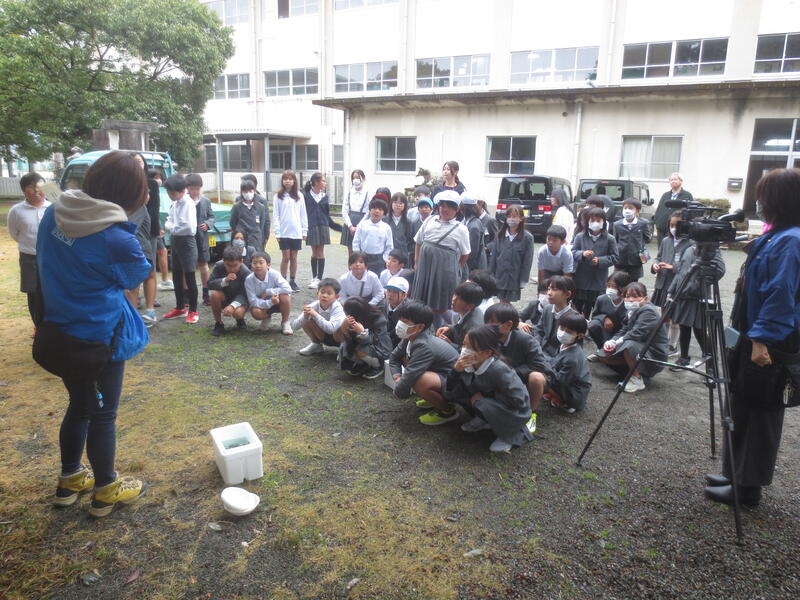 地域コーディネーターから、ホタルの幼虫が成虫になるまでの過程の説明をされたあと、幼虫を水路に放ちました。今年もたくさん飛んでほしいと思います。