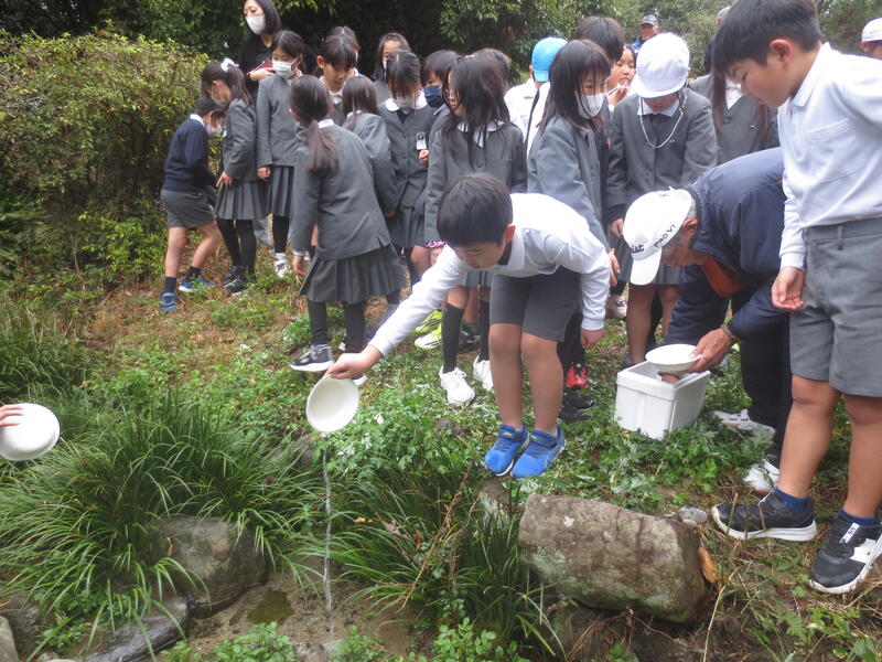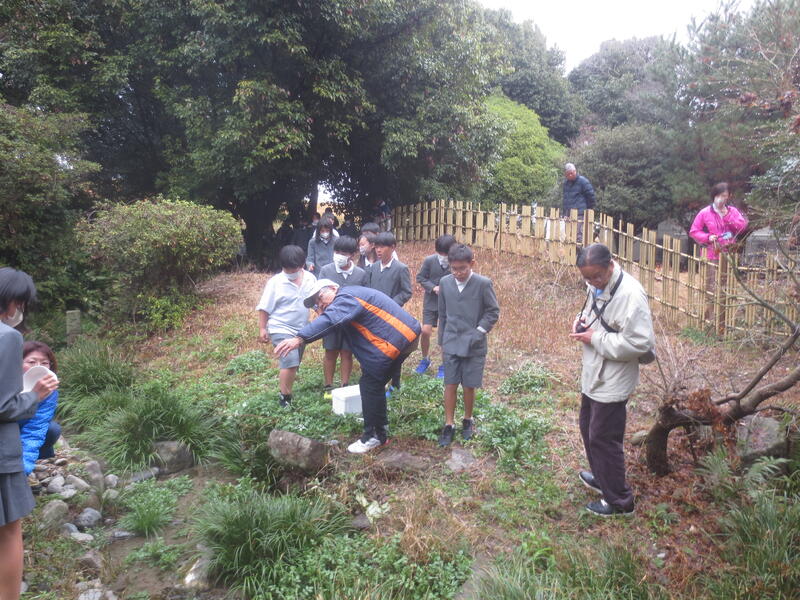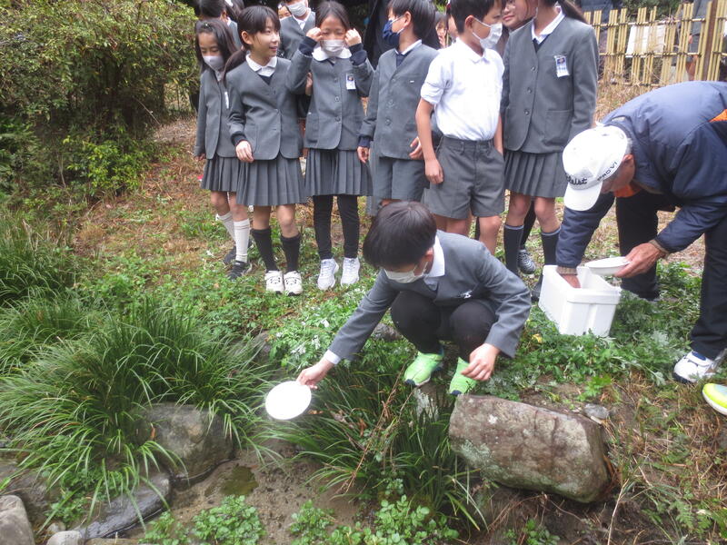 2月25日(水)に栽柳園期生保存会の方々が来校され、栽柳園の水路にホタルの幼虫を放流されました。これは、数年前から期生保存会の方々が、子供たちにホタルを見せたいという思いから実現しているもので、昨年のは200匹ほどのホタルが鑑賞できました。