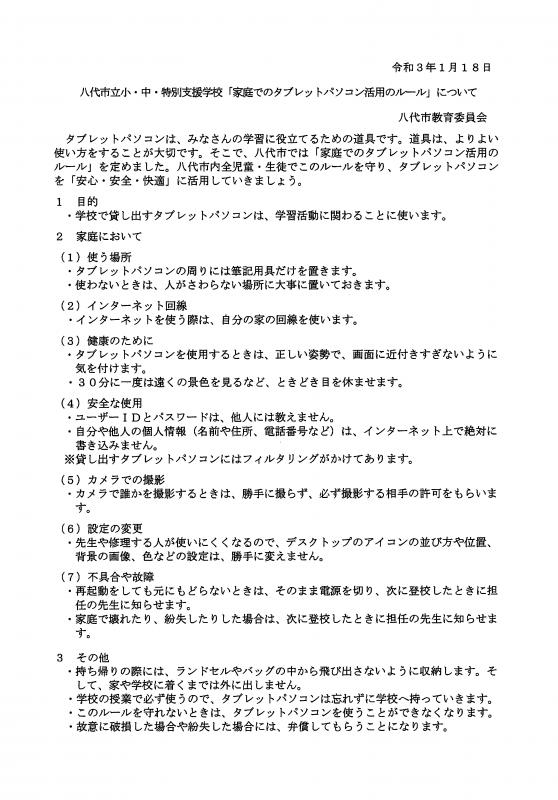 【重要】GIGAスクール構想におけるタブレットパソコン等の活用について