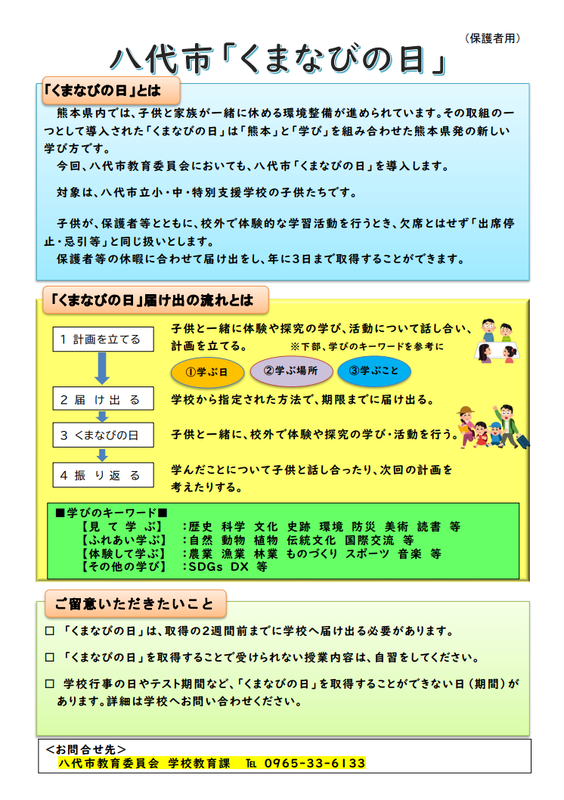 八代市「くまなびの日」が令和7年10月1日より導入されました。