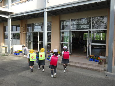 この日は、植柳コミニュティセンターから館長様をはじめ3名の方に調理のお手伝いをしていただきお芋パーティーが実現しました。できあがった物は給食と一緒に食べました。サポートに来ていただいた子ユニティセンターの職員の皆様、ご多用の中ありがとうございました。