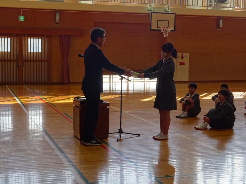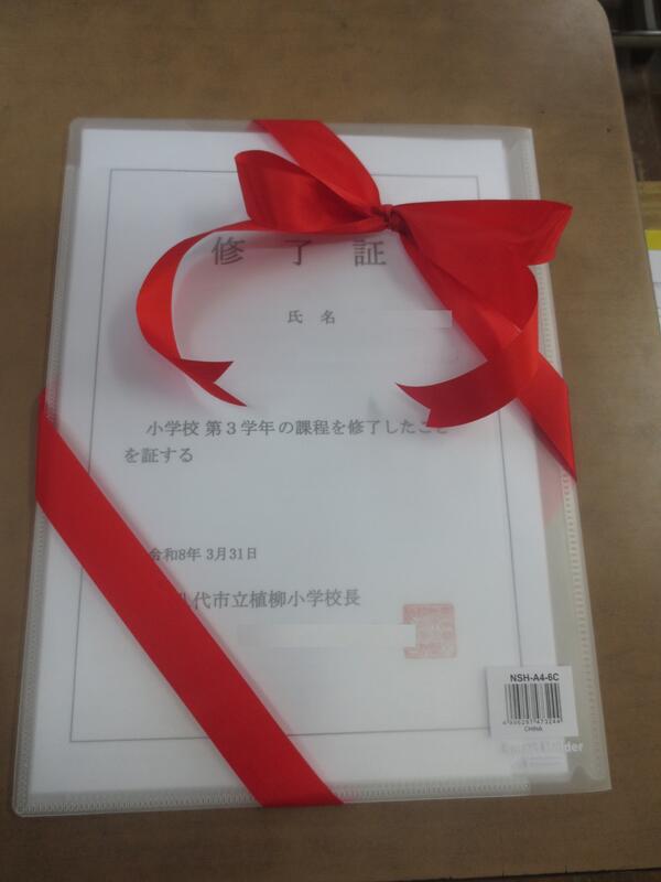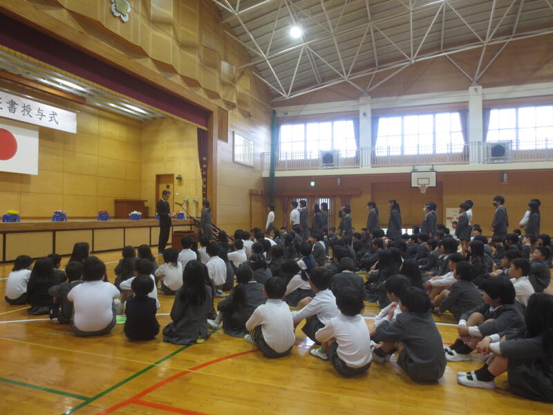 それぞれの学年で一年間の教育課程を終えた証である「修了証」を学級の代表の子供たちに手渡しました。