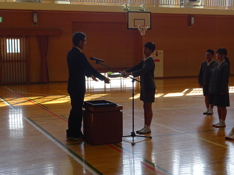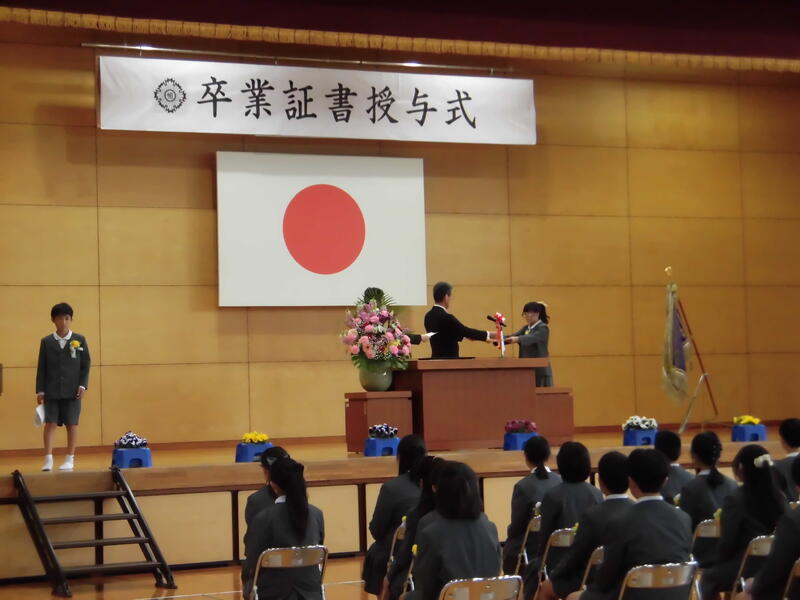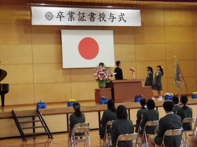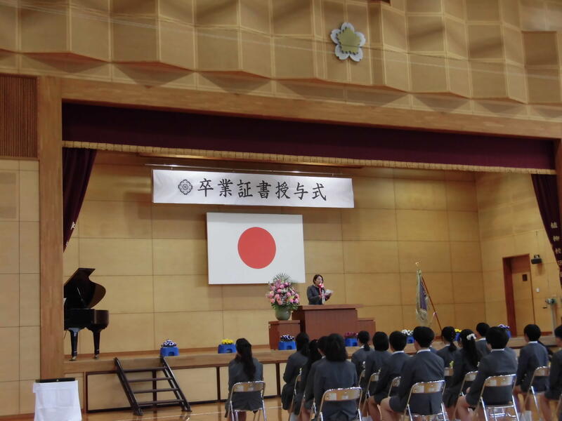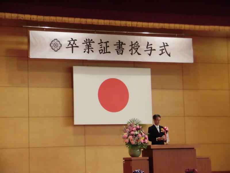 式辞では校長が「夢を持つこと」「行動すること」「感謝の気持ちを持つこと」を卒業生に向けてのはなむけの言葉として式辞を述べました。