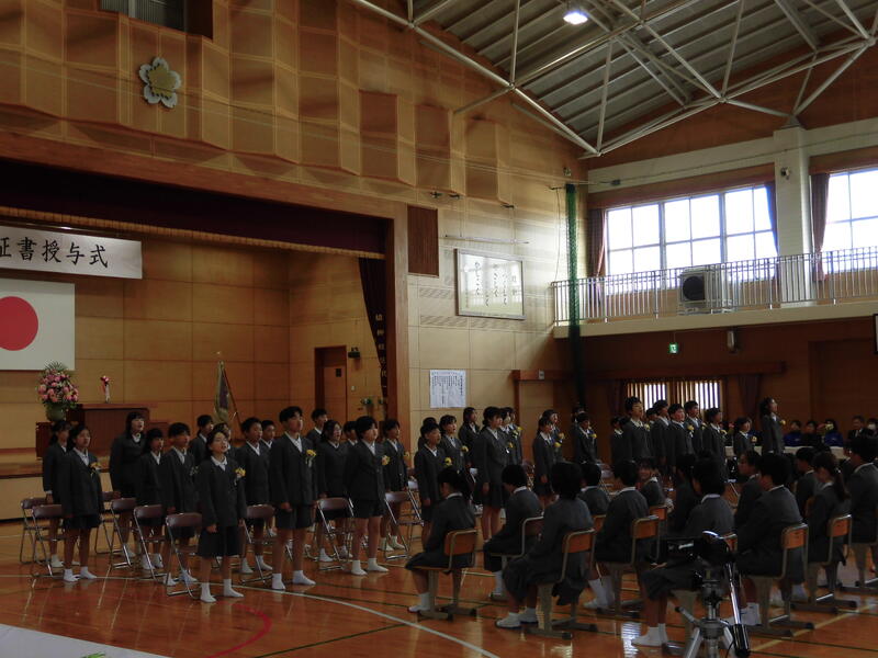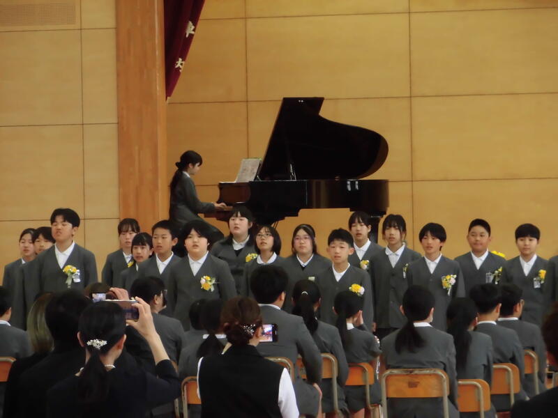 この日は一人の欠席者もなく参加でき、一人一人のお別れの言葉(呼びかけ)には、思い出と感謝の言葉が詰まっていました。厳粛な中にも心温まる式となり、卒業生は希望を持って巣立っていきました。