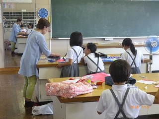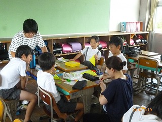 ・2年1組溝口教諭の生活科の授業。子供たちがグループになって、話し合いをしました。