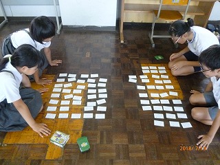 ・耳を澄ませて、上の句をしっかりと聞いています。素早くとれたでしょうか?