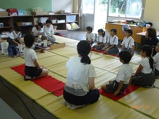 ・生活科室が素敵な茶道室に様変わり。厳かな雰囲気のなか、みんなでお茶を味わいました。