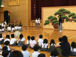 ★植柳小では、伝統文化教育を行っています。狂言を生で観て、体験し、日本の伝統文化のよさに触れることができました。