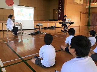・あすなろ1組と2組の児童が参加。妙見祭〇✕クイズや絵本の読み聞かせ、がめさんダンスレクチャーなどがありました。