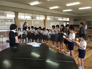 | ☆平成30年9月28日(金) 〇がめさんがやってきた!!プロジェクト体験教室に参加しました。(あすなろ学級) ・「がめさんがやってきた!!プロジェクトメンバー」の本田さんと水田さんが来校され、体験教室をしてくださいました。 【絵本の読み聞かせ】 ・あすなろ1組と2組の児童が参加。妙見祭〇✕クイズや絵本の読み聞かせ、がめさんダンスレクチャーなどがありました。 【♪がめさんダンス】 ・「がめさんダンス」をみんなで踊りました。これから1ヶ月間練習して、特別支援学級学習成果発表会で披露する予定です。がんばっていこう! |