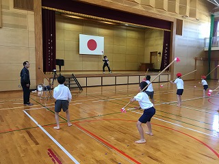 | ☆平成30年5月9日(水) 〇運動会の伝統文化~植柳の盆踊と棒踊り~ ・植柳の盆踊の「口説き(くどき)」の練習がありました。 【音楽室;昼休みに指導】 ・野﨑先生と和久田先生が指導してくださいました。 ・1年生から6年生までの希望者が練習に来ます。15人ほどが参加していました。 【5時間目;高学年の「花棒踊り」の練習】 ・棒踊りも、野﨑先生が指導してくださいます。2回目の練習でした。 ・初めて取り組む5年生も、少しずつできるようになりました。 |