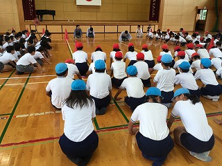 | ☆平成30年5月20日(日) 〇運動会の全体練習がありました(5/18金曜日) ・「植柳の盆踊」の全校練習がありました。 【体育館で練習しました】 ・初めての練習でした。野﨑先生をはじめ、盆踊り保存会の方が指導してくださいました。 【1年生も熱心に練習】 ・1年生にとっては初めての盆踊りです。前列で練習しました。 【みんなで盆踊り】 ・6年生と1年生がペアになり、踊りました。6年生が、やさしく教えていました。 【新しく来られた先生も盆踊り】 ・「初めて踊りました。足の動きが難しいですね。」子供たちと一緒に、熱心に練習に取り組みました。 ★運動会で、ご家族や地域の方へ「一緒に踊りましょう!」と呼びかけていましたが、なかなか参加がありませんでした。そこで、今年は「親子ダンス『植柳の盆踊』」となりました。 ★お父さん、お母さん、おじいちゃん、おばあちゃん、お兄さん、お姉さん、地域の方、みんな一緒に踊りましょう。 |