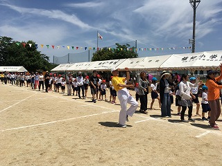 | ☆平成30年5月28日(月) 〇最高の運動会でした③ ・運動会のプログラムに伝統芸能の演技があります。 プログラム⑭「植柳棒踊り」 【高学年;植柳棒踊り】 プログラム⑮「植柳の盆踊」 【全校親子ダンス;植柳の盆踊】 ・たくさんの保護者、地域の方に参加していただき、盛大に踊りました。 【指導者の野﨑先生】 ・40年間続いている伝統芸能の「植柳の盆踊」。熊日新聞やNHKの取材がありました。 |