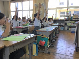 | ☆平成30年10月24日(水) 〇妙見祭について学びました(6年生) ・八代妙見祭保存会の濵会長に来ていただき、妙見祭について学習しました。 【伝統文化教室】 ・濵会長が妙見祭について話をして下さいました。 【濵会長に質問】 ・話を聞いて分からなかったところやもっと知りたいことなど、質問をしました。 【自分たちの学習を見てもらいました】 ・6年生は総合的な学習の時間、妙見祭について調べ学習をしました。一人一人まとめたものを、濵会長に見ていただき、意見をもらいました。 【お礼の言葉】 ・濵会長をはじめ、八代市役所文化振興課の方が2名来て下さいました。お忙しい中、貴重なお話しをありがとうございました。 |