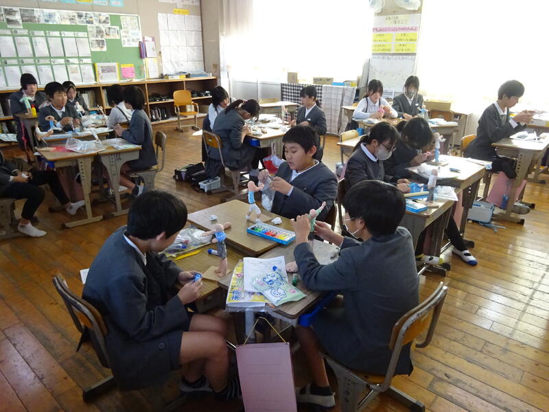 6年2組は工作で「将来の自分の姿」を紙粘土で立体に表現していました。