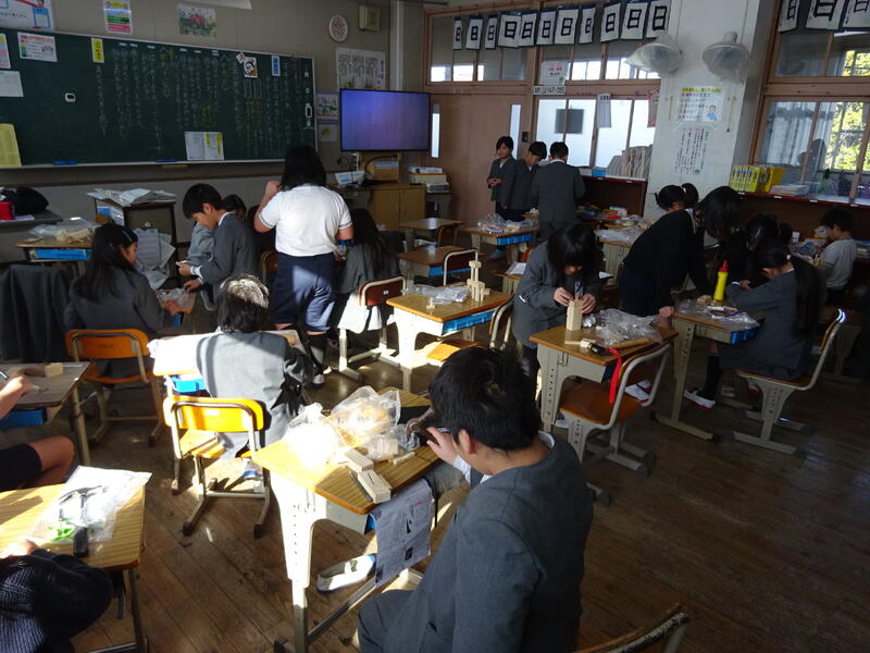 3年2組は図工で木材と釘を使って工作をしていました