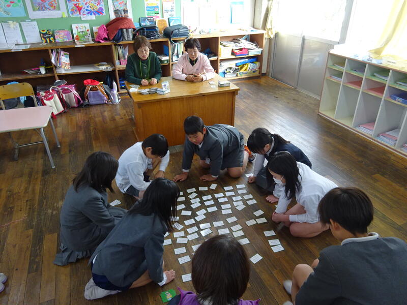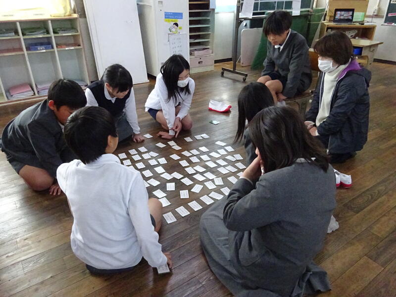 百人一首クラブ 回を重ねるごとに、下句の札を取るタイミングも早くなってきました。