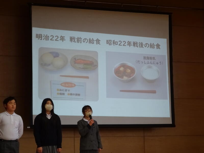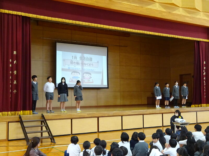 1月29日(木)に児童集会があり、給食委員会が発表しました。
