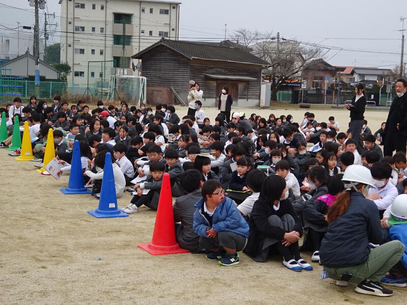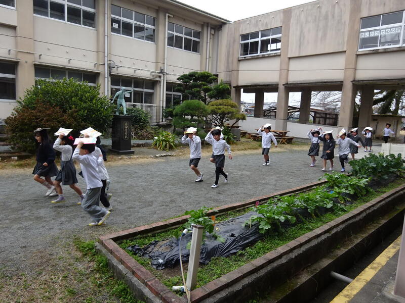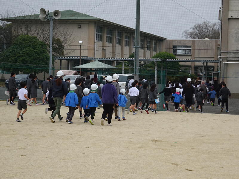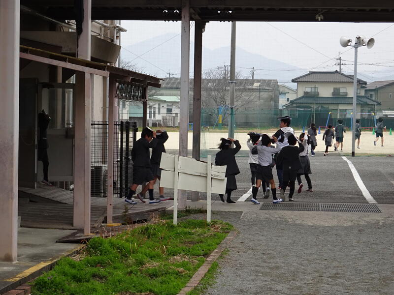 教室から運動場へ、そして運動場から校舎最上階への避難経路は子供たちはしっかり聞き取ってスムーズに動き、避難完了することができました。子供たちは終始真剣な態度でした。