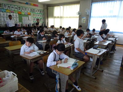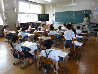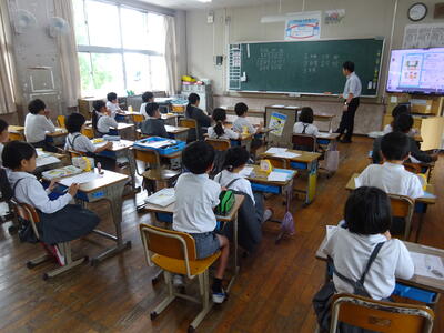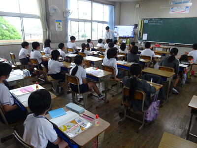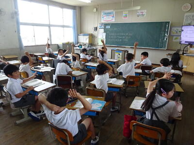 2年1組を参観の様子。子供たちは張り切って頑張っていました。