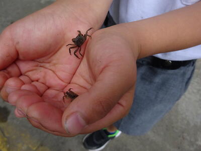 「カニを捕まえました!」と、そっと手のひらを開くと二匹のカニが・・・。