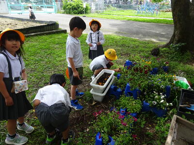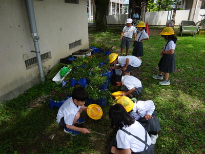 同時に、学年の畑ではなすやキュウリなどの夏野菜を植えました。