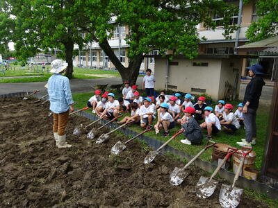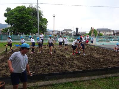 先日種まきを終えた5年生が、今回は田おこしを行いました。