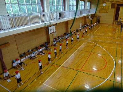 この日は、6年生から体育館集合のアナウンスを開始して、