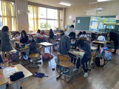 避難先と避難経路をおうちの人と確認するように宿題を出しました。