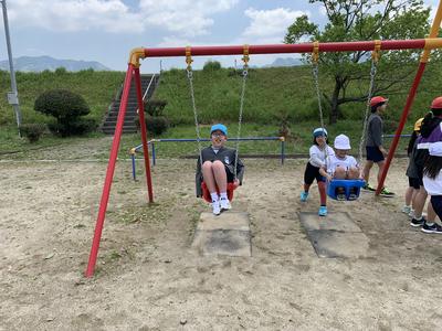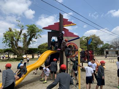 大きな遊具が大人気で、学年関係なく登って遊んでいました。