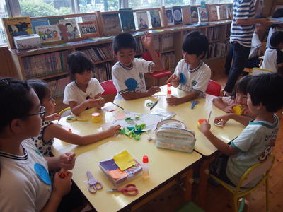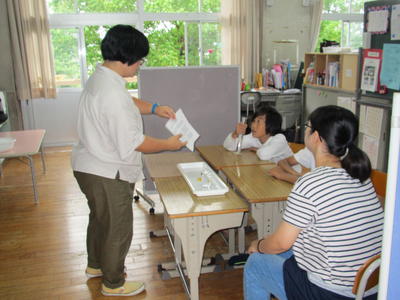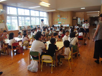 教室に行ってみると、ほとんどの子が食べ終わって片付けをしているところでした。