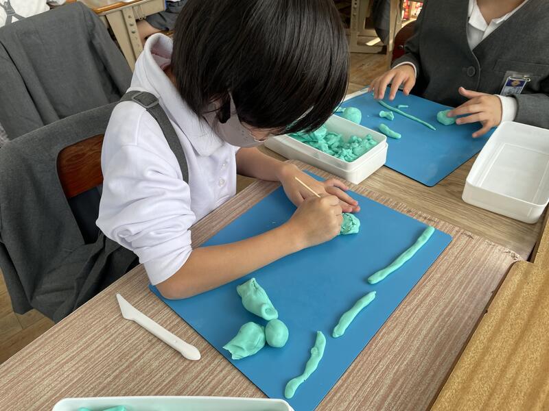 ねん土やビーズ、モール、ビー玉を使ってきれいに仕上げることができました。