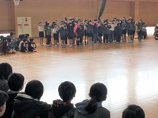 | ☆平成30年12月26日水曜日 〇終業式がありました ★朝の様子★ 【2学期最後の登校】 ・雨も降って寒い中、防犯協会の政木さんと教頭先生が登校指導。朝早くから子供たちの安全のため、ありがとうございました。 【駅伝の練習】 ・体育館で10分間走をしました。「♪君は、シンデレラガール…」軽快なリズムに乗って、自分のペースで走りました。 ★終業式★ ・2学期は8月29日から12月26日まで81日間でした。2学期の終業式がありました。 【校長先生の話①】 ・「校長先生の通知表」として、すべての学年の学習や行事の頑張りを話されました。 ・「1年生はあいさつ上手でしたね。給食もよく食べ、食缶はいつも空っぽでした。…6年生のいずかし集会の発表は感動しました。…お互い本音で語り合えた授業も素晴らしかったです。」 【校長先生の話②】 ・「2学期はたくさんの山(行事)が待ってるよ。『さあ、山に登ろう!』をめあてに頑張ってきました。頂上からたくさんの頑張りを眺められた2学期でしたね。」 ・「今年の一字は『災』でした。いろいろあった一年だったと思います。反省するところは反省し、新しい年を迎えてください。」 【各学年の発表】 ・1年生から6年生まで、代表の児童が2学期の頑張りや思い出を発表しました。 ・ジョギングタイムでたくさん走った、いずかし集会の台詞を頑張って覚えた、あしきた青少年の家では力を合わせてペーロン船を漕いだ、陸上記録会に向けて努力した、などそれぞれの頑張りがうかがえました。 【校歌斉唱】 ・みんなで元気よく校歌を歌いました。 【5年生の田中さんがピアノ伴奏】 ・ピアノ伴奏者が6年生から5年生にバトンタッチ。初めて全校の前で弾きました。緊張した中、最後まで見事に演奏できました。パチパチ! 【高学年が片付け】 ・集会の準備や後片付けは、毎回5,6年生が率先して動いてくれます。今日もありがとう! ★学級活動★ 【2年生;学級活動】 ・1時間目は終業式、2時間目は大掃除、3時間目は学級活動で冬休みの暮らしや宿題について、担任の先生から話を聞きました。 【1年生;通知表をもらいました】 ・4時間目、2学期の通知表を担任の先生から一人一人もらいました。みんなよく頑張りましたね。 ★下校の様子★ 【下校指導】 ・明日から冬休み。元気に12日間を過ごし、266名全員が1月8日の始業式を迎えられるといいですね。 |