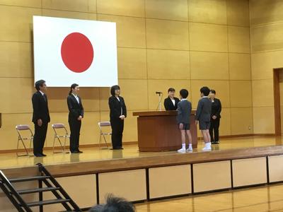 「平家物語」「竹取物語」の群読、「♪ビリーブ」の合唱を発表しました。